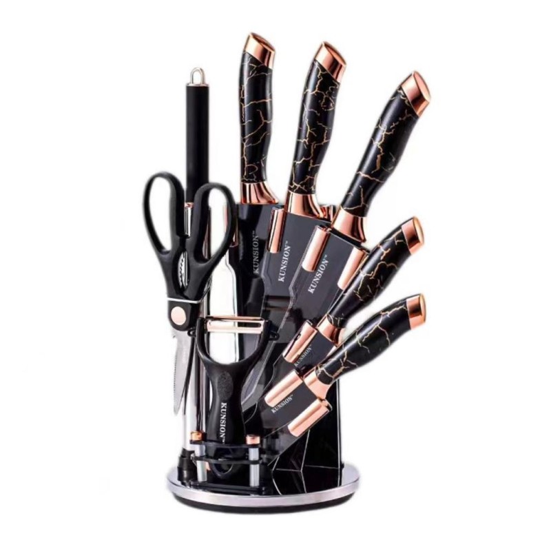 Ensemble Couteaux en Acier Inoxydable avec Support Rotatif 360° 8 Pièces SY-L116